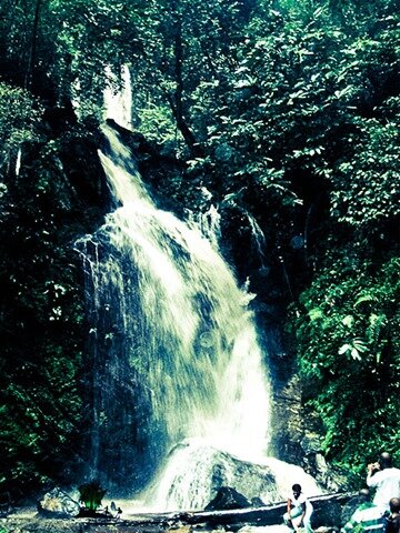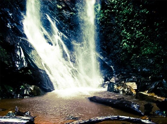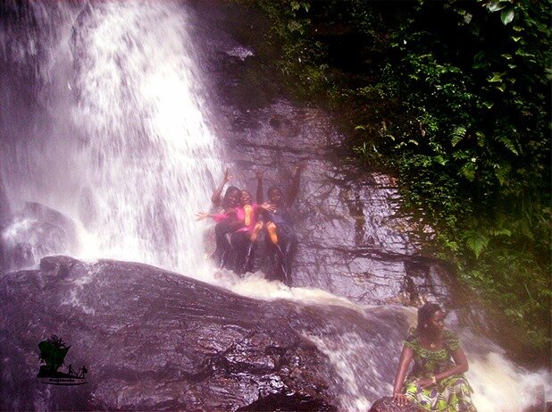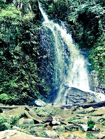 The first cascade plummets through a narrow opening in a cluster of luxuriant tree trunks blanketed in dark green leafage, down a steeply folded rock face of about ten meters in height. Like a rain of a million limpid pins, the showers descend and inundate s huge boulder reposed at its plunge pool below. Fallen logs of wood laid dank in the pool and out-flowing stream channel. The air hung muggy with a heavy smoke of splashed water droplets. The sight sparks the first fire of excitement that pervade the veins of any visitor at the falls. The refreshing ambience is further thickened when one ascends the steep rocks to explore the other stages of the waterfalls.