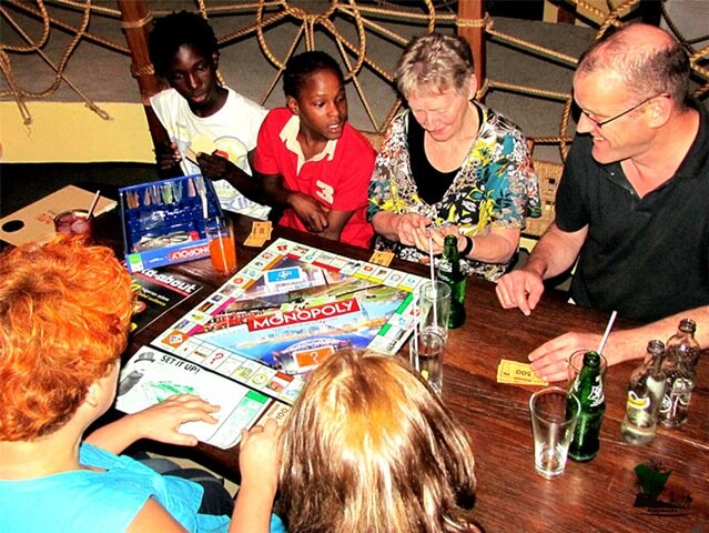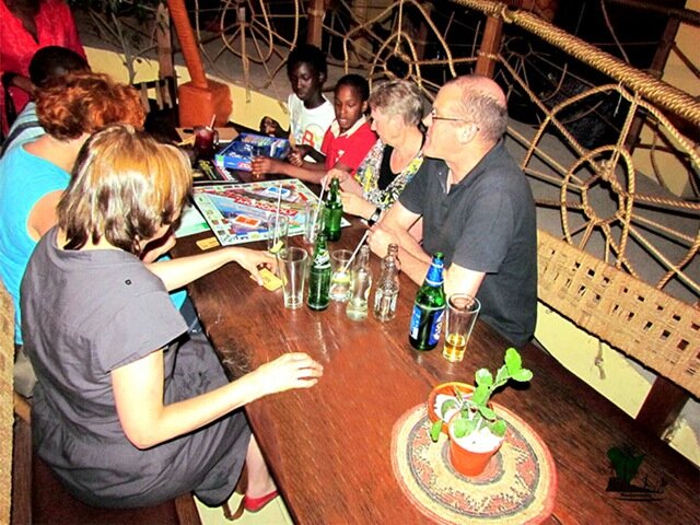 – Family playing the Lagos Monopoly over drinks at Terra Kulture, Lagos.