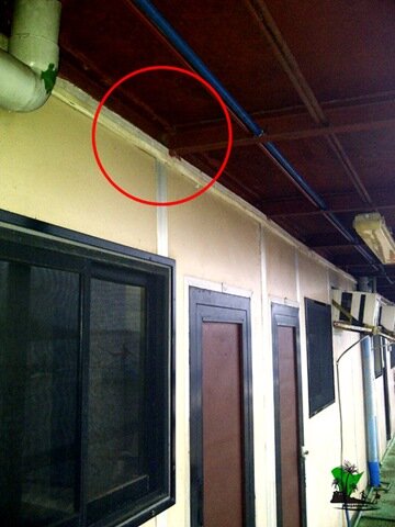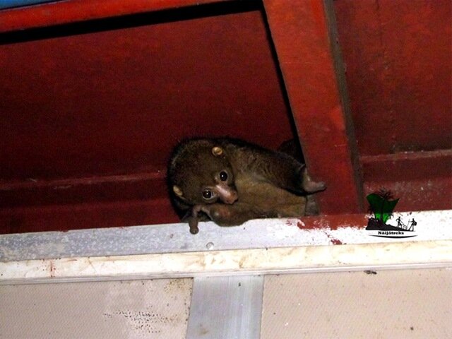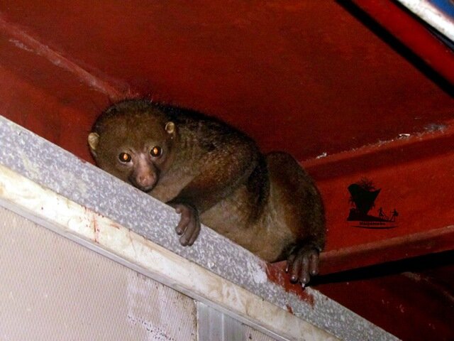 – The part of the houseboat roof (in red circle) where the Bush baby was found.