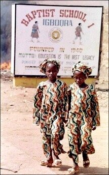 – Twin children at Igbo-Ora (photo source: www.taiwosworld.blogspot.com)