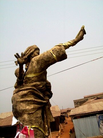 – A stone pillar at the entrance of Igbo-Ora community, welcoming visitors to the village (source: BBC world)