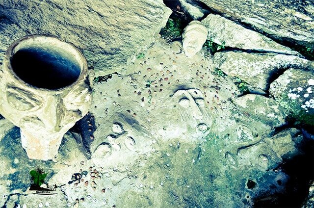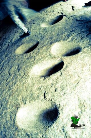 …the people used the circular depressions as mortars for pounding yam during the days of war.