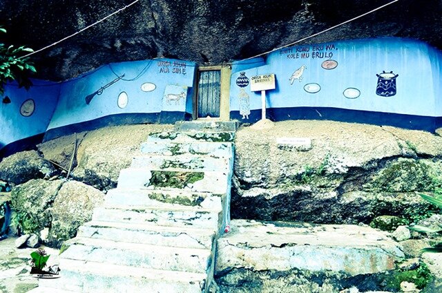 I stood upon the heights of Olumo and marveled at the gracious sight that laid before me. Like an endless blanket of rust brown roofs, capping buildings made of thick mud walls and finished with painted cement plasters, the panoramic view of the ancient town of Abeokuta sprawled beneath me. From the top of the hill, the tour guide pointed to a school located in Oke-Gunya area of the town- the Old Baptist High School where a suite of notable Nigerians graduated from; they include Chief M.K.O Abiola, President Olusegun Obasanjo, Dimeji Bankole etc. As a result of this, the school had become highly respected and honored by the people of Abeokuta and beyond. The guide also pointed to the popular Ogun River, flowing gracefully across the landscape; then the Old Central Mosque sitting ostentatiously at the centre of the town, as well as some three green-colored multi-story building within the town which he called the birthplace of M.K.O Abiola. Then he turned to the rear side of the rock and the pointed a church building clad in white and bedecked with a soaring four-cornered tower at its front- this, he called The Old Baptist Cathedral, which is the oldest church in Abeokuta. We descended the hilltop through the stairwell within the elevator tower and accessed the another cave dwelling at the rear part of the hill through Obaluaye Garden. The garden which stretches to the rear part of the hills houses the Obaluaye Shrine as well as the cave dwellings where the Priestesses of the shrines live. We paid homage to the priestesses, received their blessings and took our leave.