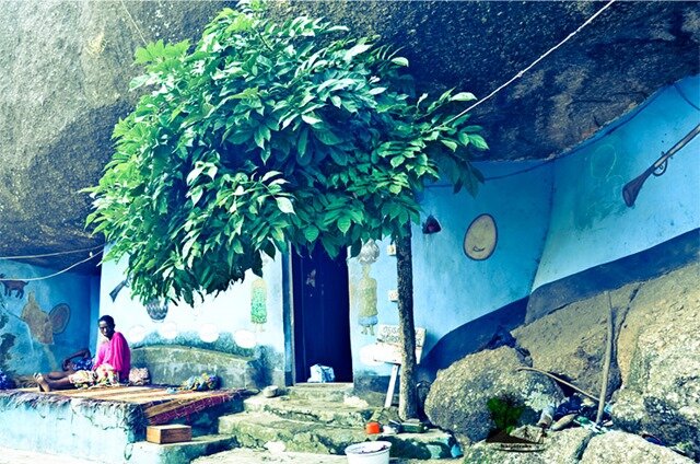 The entrance to Abaluaye Garden at the rear foot of Olumo Rock. The garden is also the venue of celebration of festivals of Obaluaye and other deities in the cultural calendar of the resident priestesses.