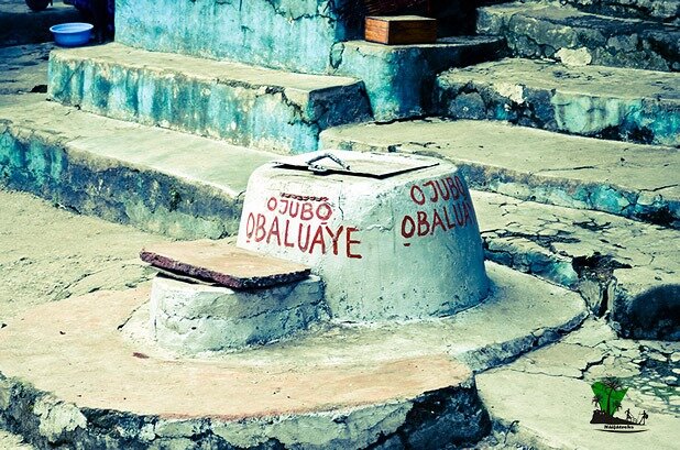 – The shrine of Obaluaye- the Yoruba deity of Karma, also known as ‘Sopona.’ The deity is believed to control small pox.