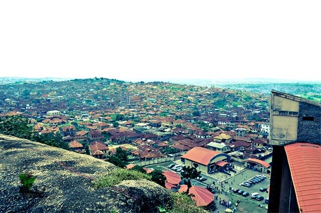 … Like an endless blanket of rust brown roofs, capping buildings made of thick mud walls and finished with painted cement plasters, the panoramic view of the ancient town of Abeokuta sprawled beneath me.