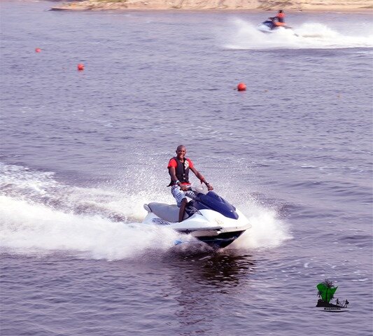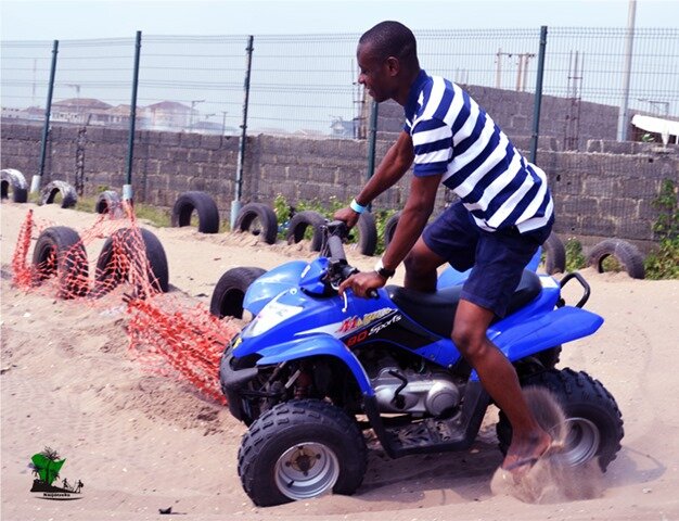 I strode to the ticket booth and purchased a ticket to ride the quad bike. They charge N2000 for three cycles. As I bounced and sprung through the rolling sandy race track, I sighted one of the tourists speeding off into the lake on a colorful Jet Ski. He seemed to have a good handle of the machine. He is probably an experienced jet skier. A subtle pang of jealous caught me immediately. I began to hunger for a taste of what the skier was enjoying. I began to rev up my quad bike so as to quickly finish my three rounds, so much that the machine bounced higher along the track. The quad bike instructor at the end of the track kept waving gestures of warning at me. However, I managed to obey till I finished my rounds.