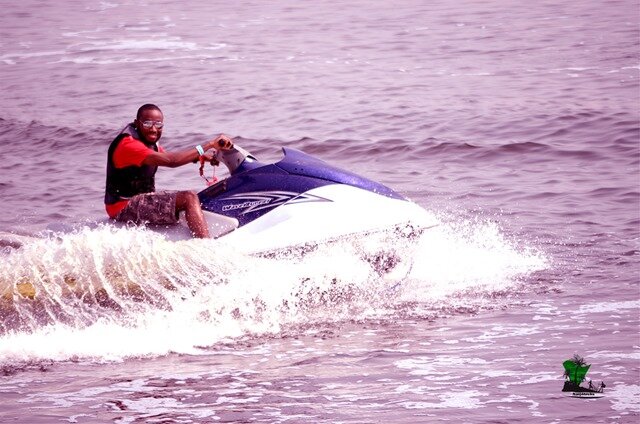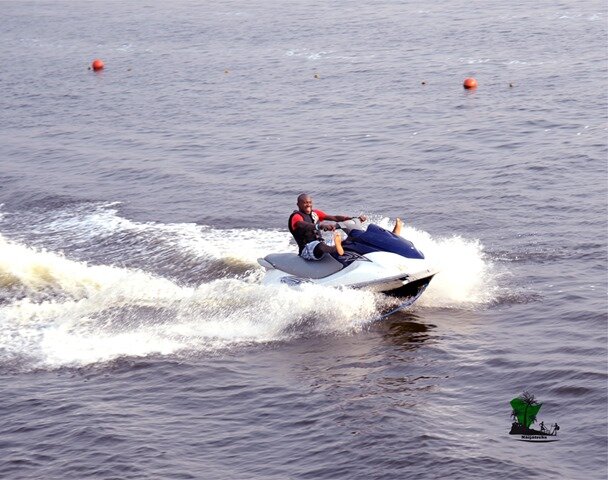 Although, I wished the ride did not end, the promise of stronger thrill on a jet ski would not let me pay for another round of quad biking. I dumped the bike and dashed down to the ticket boot to buy a ticket for jet skiing. It cost N3000 for fifteen (15) minutes. I quickly bought one hour, took off my shoes, picked and strapped up a life jacket. I noticed there were lots of visitors at the resort already and the queue at the ticket booth was building up. I descended the steps leading to the floating jetty as one of the marine instructors beckoned me to come down and pick the only available Jet Ski at that moment. The instructor who was garbed in a wet swimming suite, gave me a shocking look when he took my ticket and saw ‘one hour’ on it. I smiled and climbed the Jet Ski. He sat behind me and rode with me on my first round on the lake, teaching me the basic controls. I was initially scared of being left alone to ride the machine. The thought of falling of the machine at high speed tugged at my mind. The instructor suddenly slowed down at the middle of the lake, with waves soaring up and down on either side of the ski. He screamed at me to take the control because he was going to jump into the water and swim back to the shore. I stared at him in shock.
