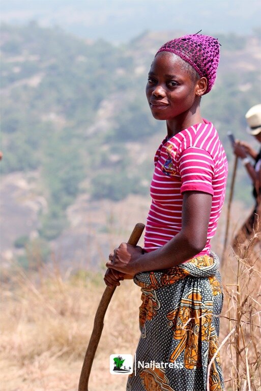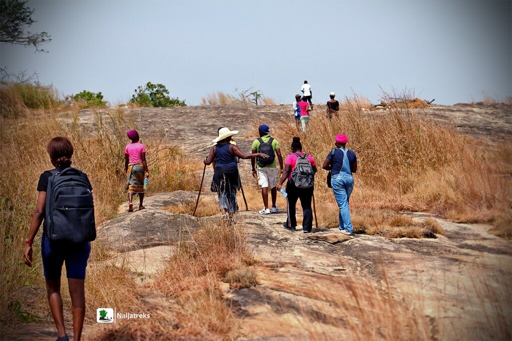 Stretching and getting ready to start the arduous hike up Oke-Ado Mountain.
